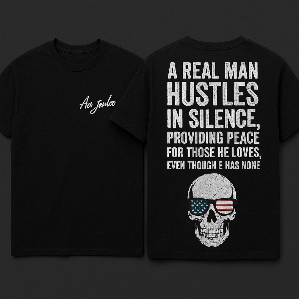 “A real man hustles in silence, providing peace for those he loves, even though he has none.”